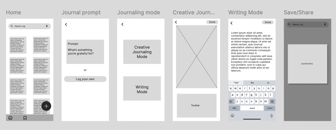 The solution focused on translating the research insights into a journaling experience that balances creativity with wellness. I developed wireframes that integrated feedback from interviews and prioritized a minimalist interface. I introduced flexible tools for drawing, image placement, and written reflection. A dedicated mood-tracking screen flow was designed to help juicers visually log their emotions alongside their journal entries. The mock-ups mapped the overall user flows to ensure the experience remains distraction-free and easy to navigate. The final design emphasizes customization and creative freedom.