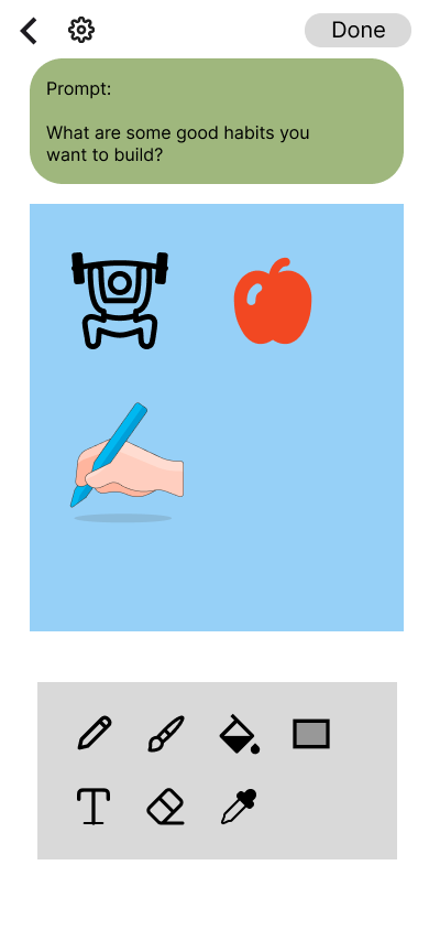 There are many journaling apps that focus on writing, however few allow users to fully customize how they would like to express themselves. I identified a gap in tools that combined creativity journaling with guided mental health practices, such as where users can draw, add images, log emotions, respond to prompts, and more. This project explores a journaling app designed to give users complete control over how they document their thoughts, integrating nature sounds while they log away.